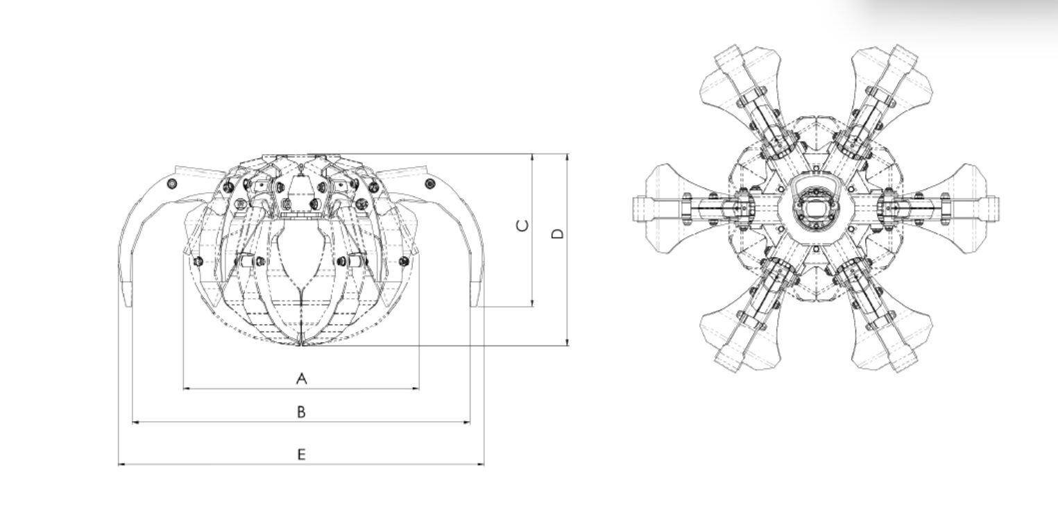 La struttura del corpo e delle chele รจ realizzata in acciaio alto-resistenziale S690, mentre i puntali in Hardox 450 offrono una protezione antiusura superiore, garantendo durata nel tempo anche in impieghi gravosi.