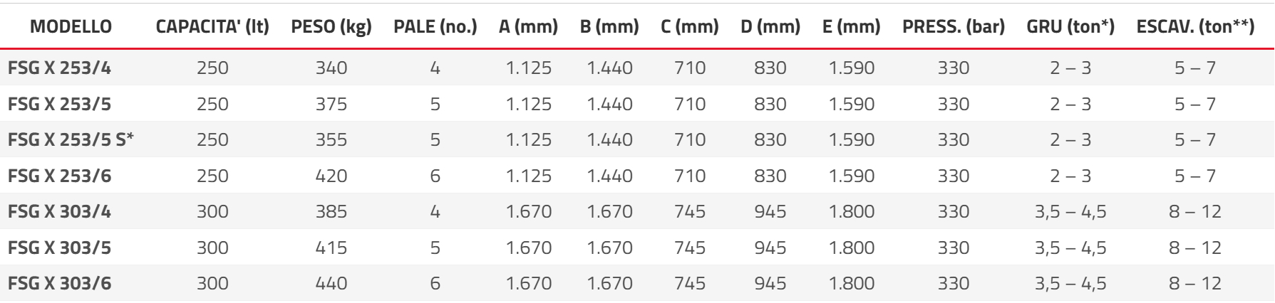 La FSG X rappresenta il livello superiore della storica gamma FSG, unโ€™evoluzione che integra migliorie tecniche avanzate per rendere la benna ancora piรน performante nella presa del materiale e nel sollevamento del carico.